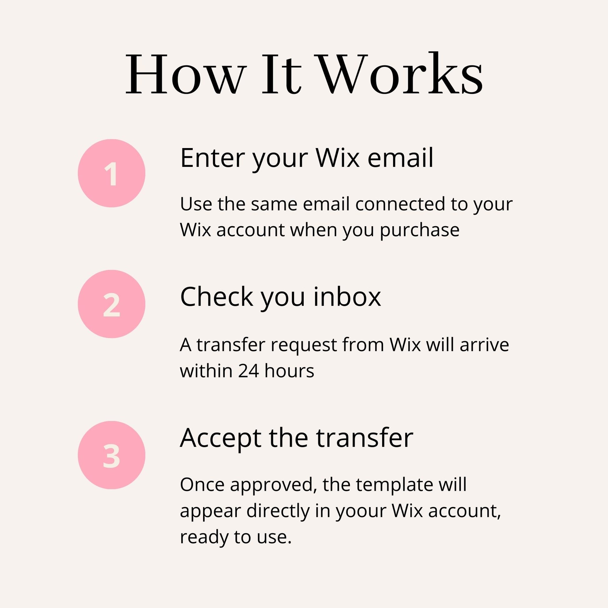 3. You will receive a transfer request from Wix through email within 24 hours.