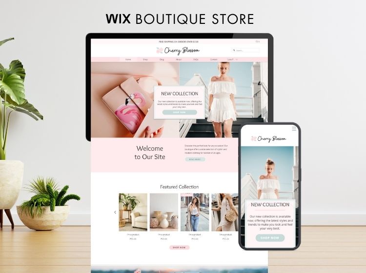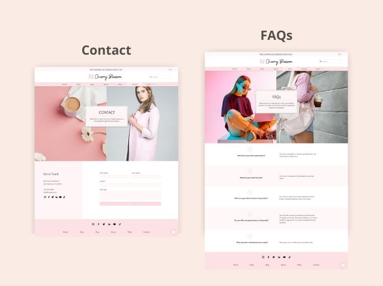 This Wix Website template is perfect for an online ecommerce website. The theme features bright, pastel colors. The layout is easy to navigate and includes sections for the shop, product pages, about, blog, contact, faqs and customer pages.