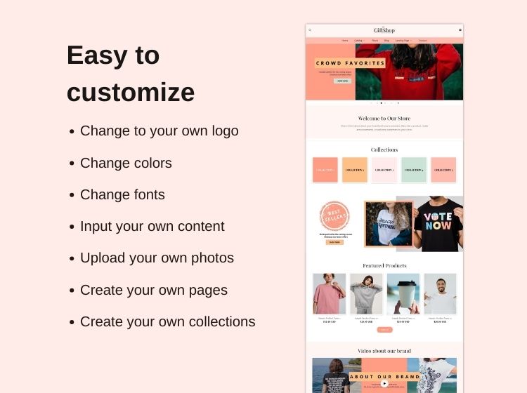 Your website will be fully customizable and easy to edit using the Shopify administrator page.