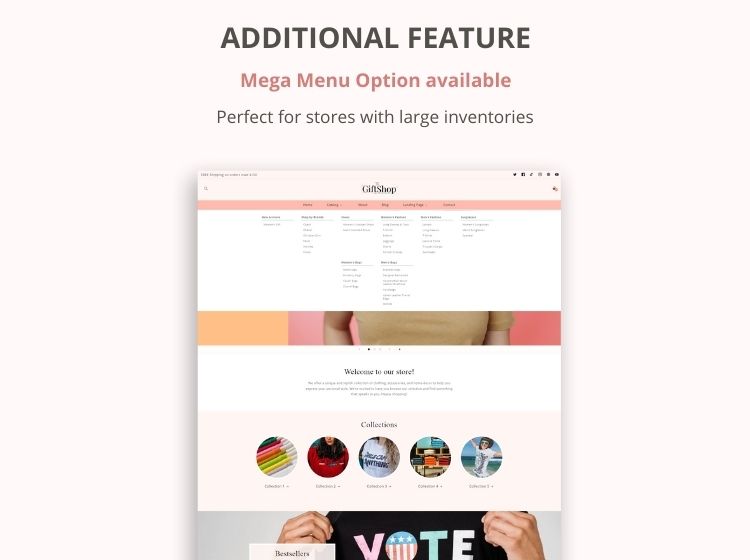 This Shopify theme features a colorful bright color palette. This design is a versatile theme that can be used for many types of products. It's perfect for POD, boutique, apparel, gift shop, clothing.