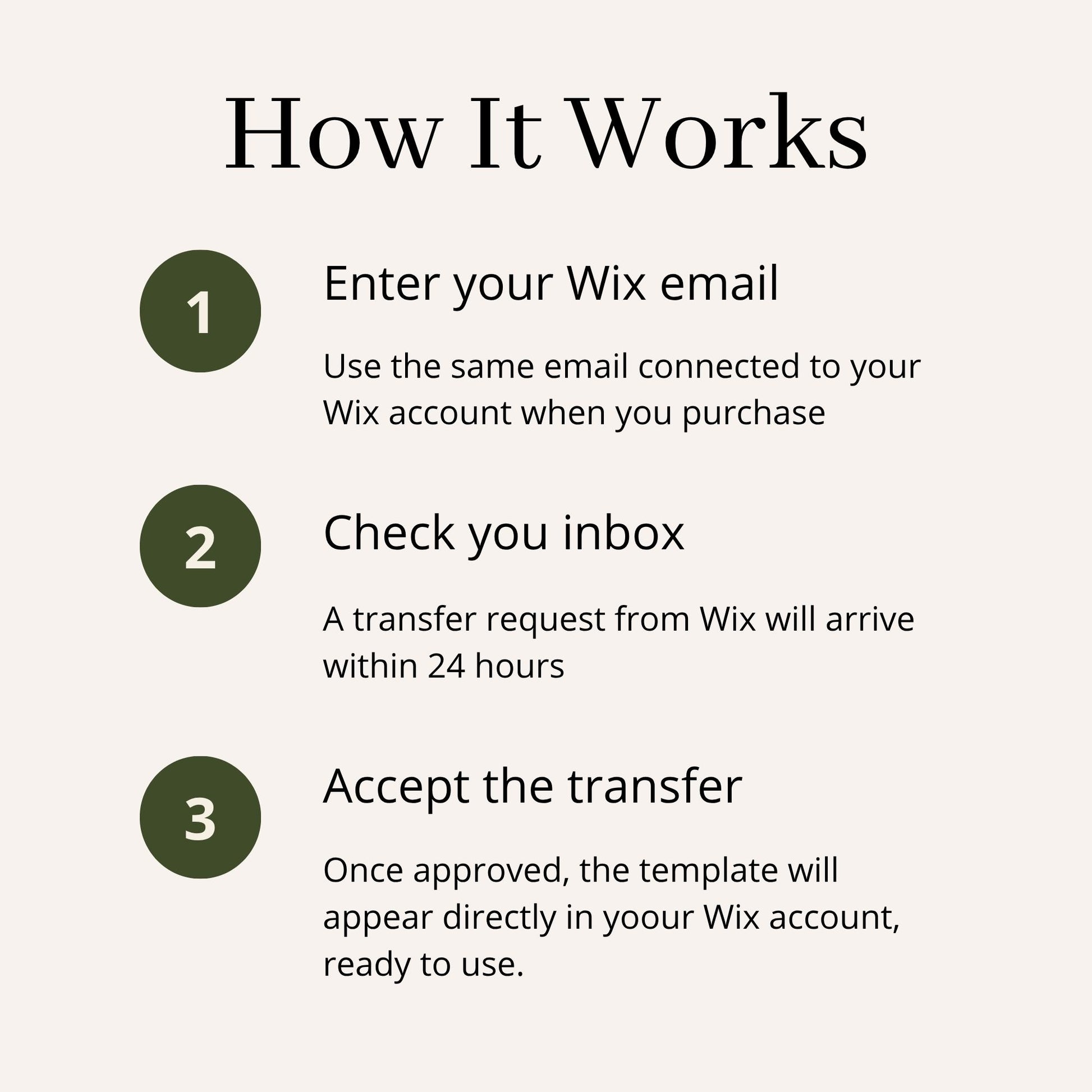 3. You will receive a transfer request from Wix through email within 24 hours.