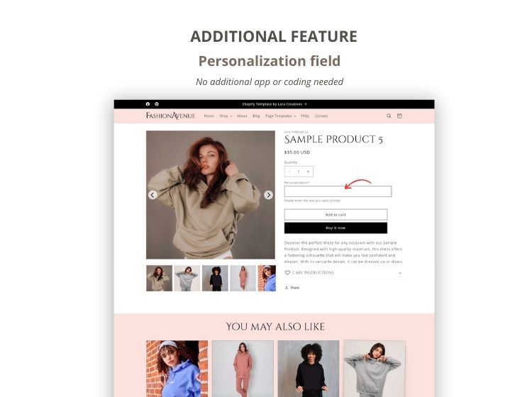 This is a clean and modern Shopify template made for clothing, fashion and apparel stores. It features pink, minimalist colors and loads of useful features to enhance your store.