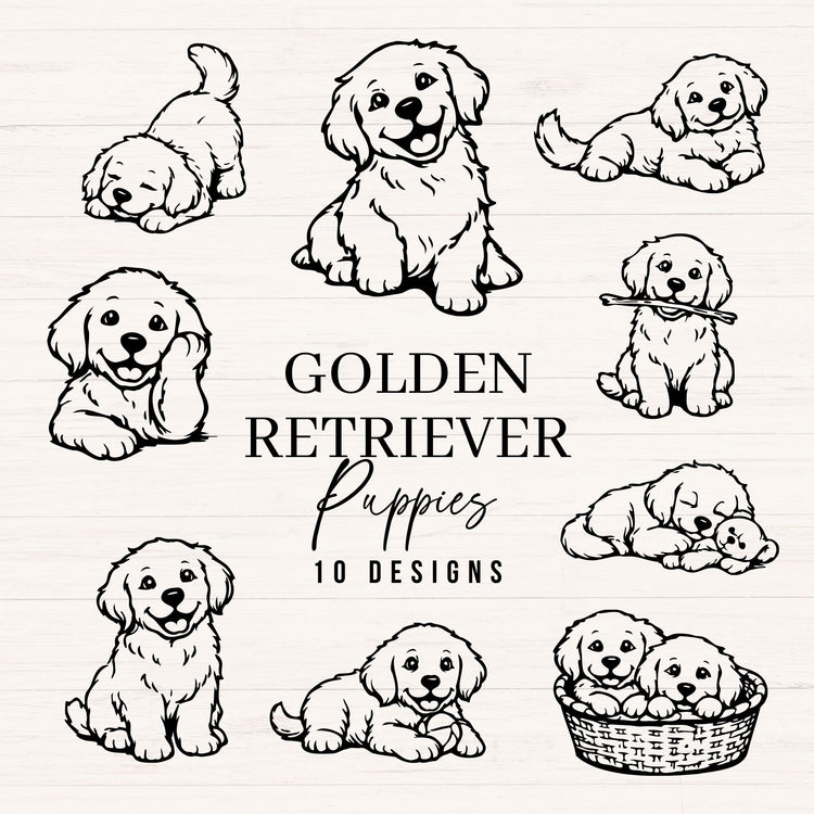 Instant Download – Golden Retriever Puppies SVG Bundle (10 Designs)