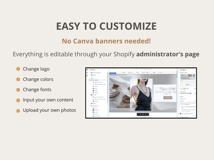Your website will be fully customizable and easy to edit using the Shopify administrator page.