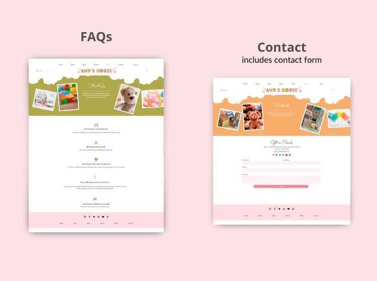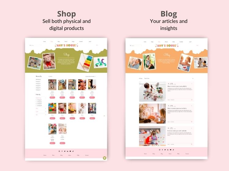 This Wix Website template is perfect for an online store website for kids items, apparel and toys. The theme features fun, bright colors. The layout is easy to navigate and includes sections for the shop, product pages, about, blog, contact, faqs and customer pages.