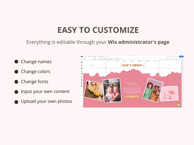 Your website will be fully customizable and easy to edit using the Wix administrator page.