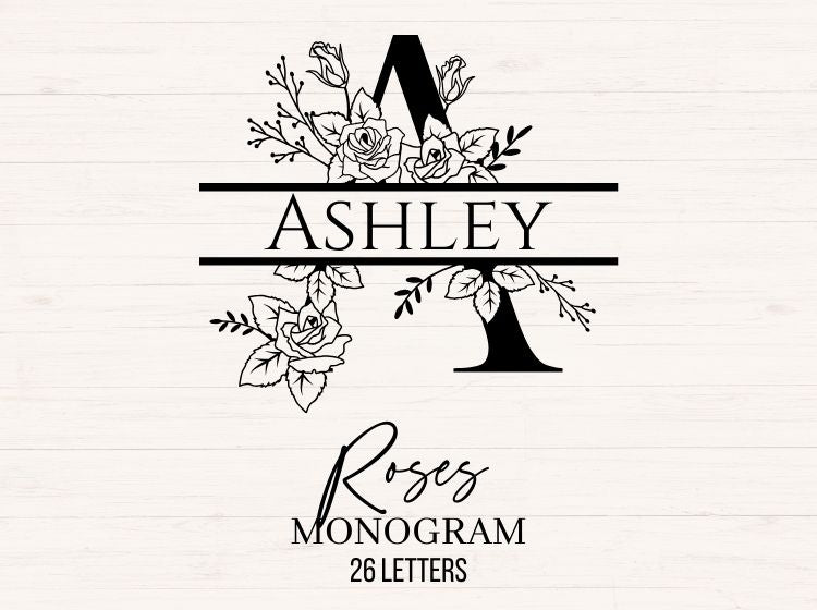 This is a set of (26) twenty six hand-drawn roses monograms. It's a split monogram so you can add any name you want. This purchase includes all 26 letters. This can be used for cricut, silhouette, engraving, sublimation and other craft projects.