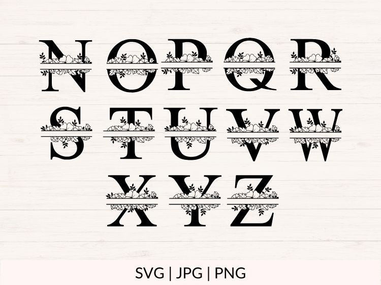 This is a set of (26) twenty six hand-drawn flower split monograms. This purchase includes all 26 letters. This can be used for cricut, silhouette, engraving, sublimation and other craft projects.