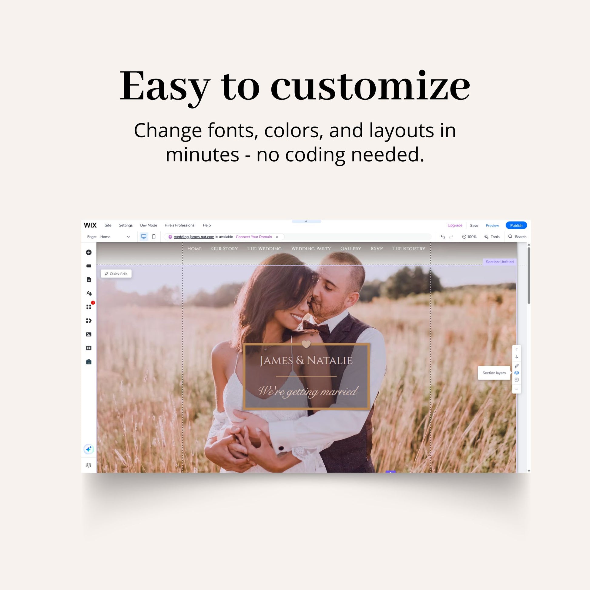 You can easily add or remove pages and sections through the Wix web app to fit your wedding vision.